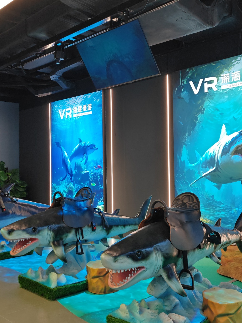 不同于现实动物园的传统游览模式,VR+动物乐园由多种仿真动物体感外设和VR头显构成,采用最前沿的VR虚拟现实技术和高仿真动物体感外设,突破时空、动物种类限制,将现实难得一见甚至灭绝的动物渲染成高清数字画面,真实还原体貌体态、生活习性及其生存环境等,轻松实现逼真的骑乘体验和极致的临场感官享受。